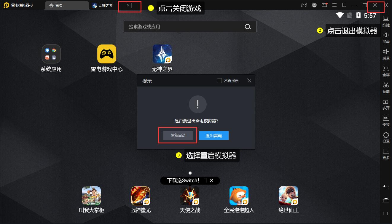 2,挂机闪退,运行闪退严重的用户可以更换64位版本模拟器。