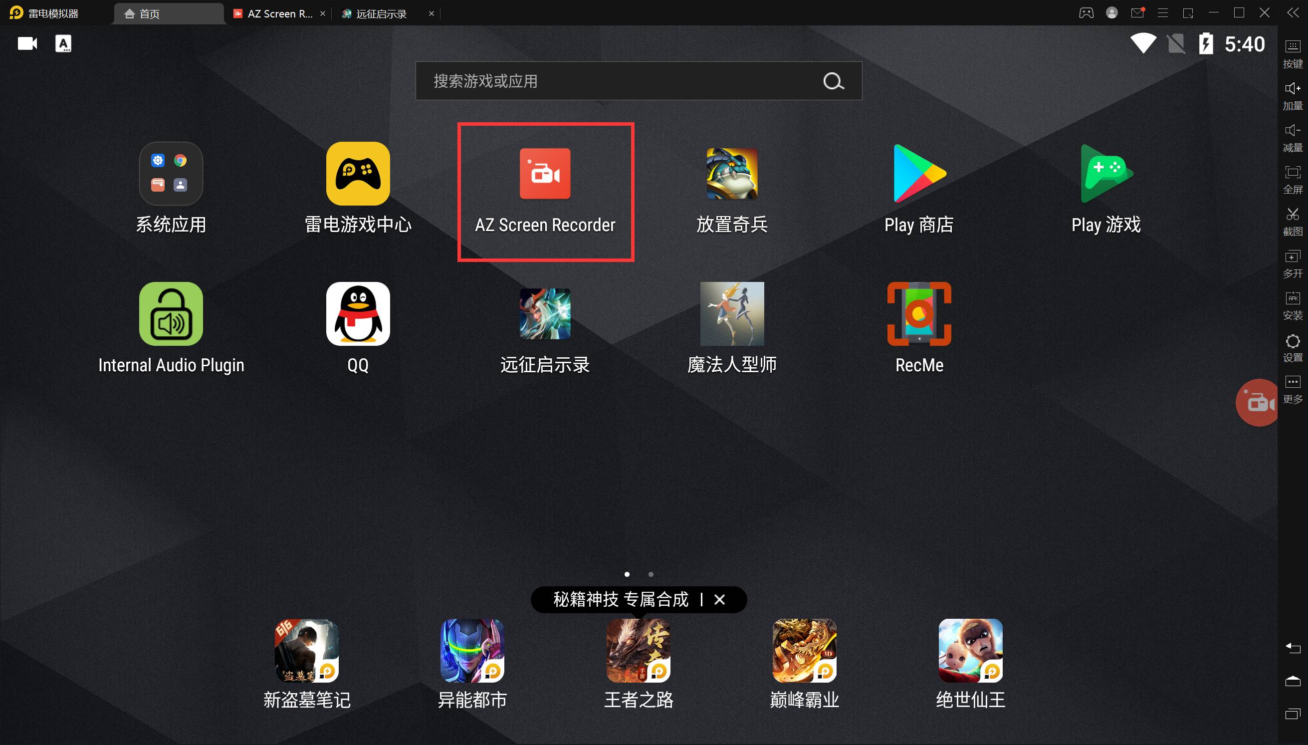 在雷电模拟器上安装了 AZ Screen Recorder 屏幕录制 APP 但是无法录制系统内部音频 如何解决