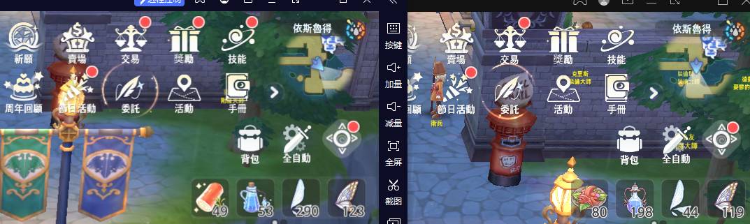左边是雷电9模拟器,右边是雷电4模拟器。两模拟器设置完全一样