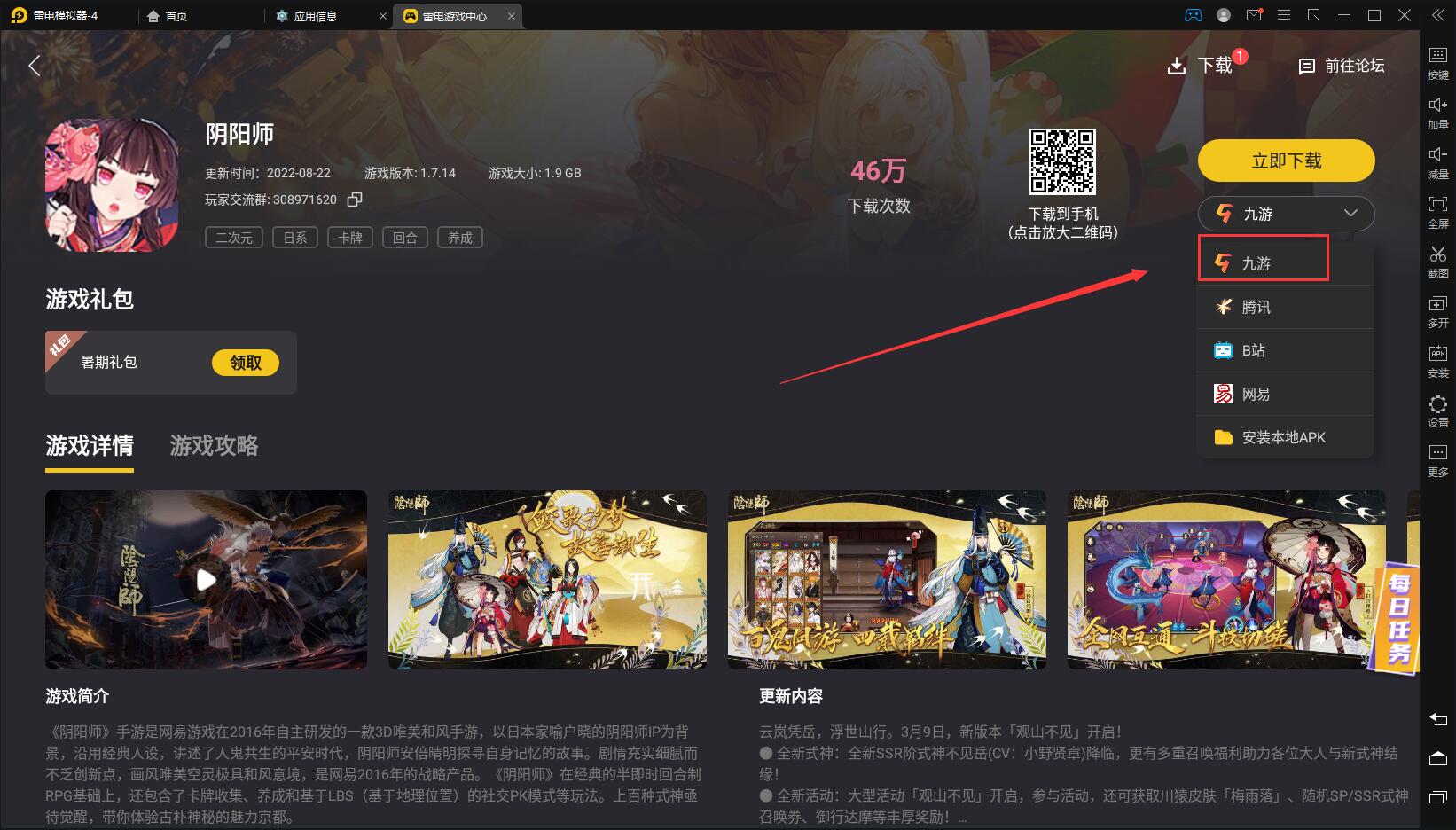 3,九游渠道同样下载方法即可