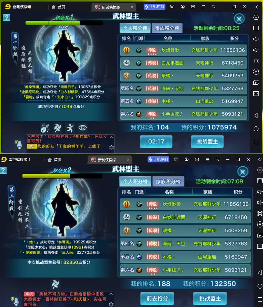 上图是最新的9.0.21从副本里倒计时的时间可以看到模拟器0和模拟器1的时间是不同步的,实际上就是模拟器0的时间也和正常的时间有出入,显示8分25秒,实际应该是8分35秒才对,反正是多开开得越多,时间差的越多,当时9.0.15的时候测试过4开,4开的快了差不多7分钟,望程序猿能解决下这个问题。。。