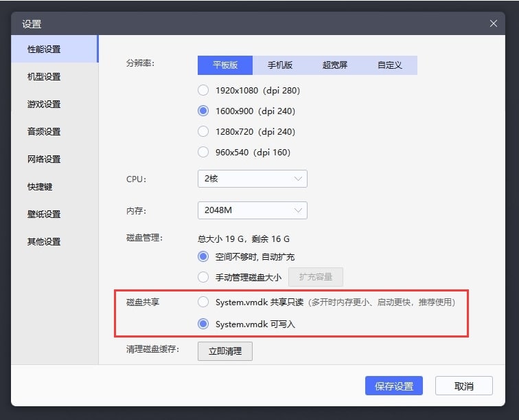 雷电模拟器9.0.22版本,新增功能“磁盘共享”,改功能默认状态下,只有读取权限(减少多开占用),而不能写入,就会导致Xposed框架、抹机王等软件运行异常