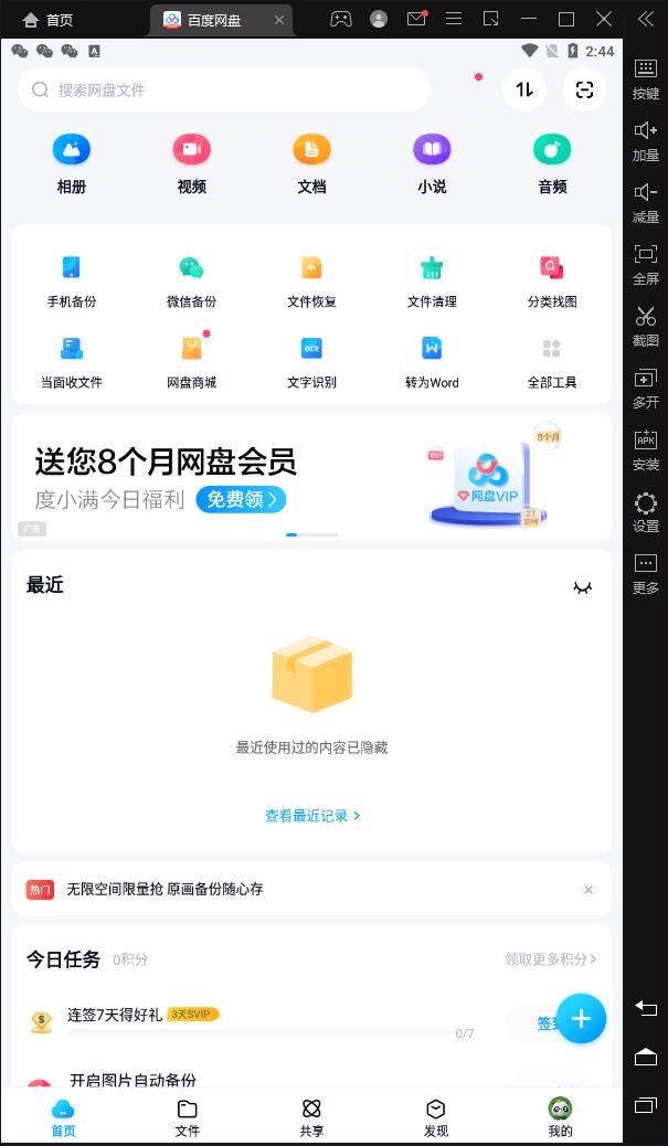 1,卸载模拟器上原有的百度网盘app,长按图标,拖到到左侧卸载