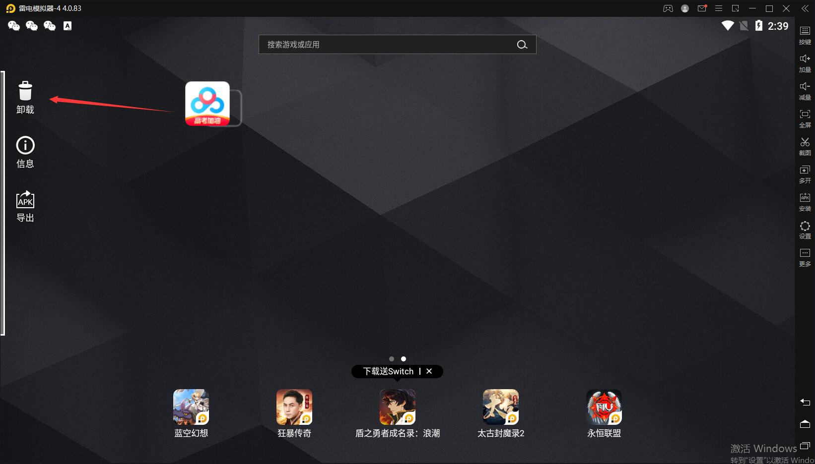 2,下载模拟器专版百度网盘(或者直接在雷电游戏中心下载安装),然后将下载完的apk拖到模拟器桌面安装即可
