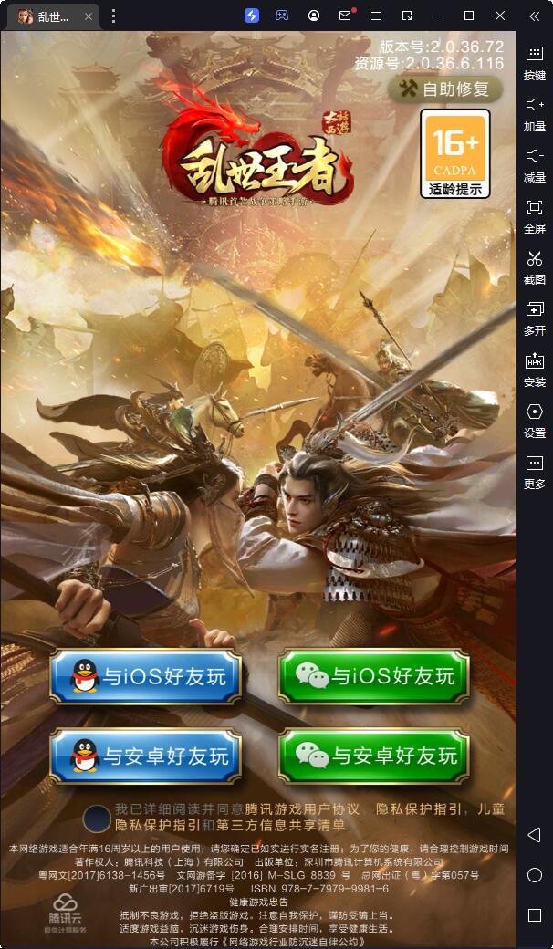 3,然后打开游戏就可以使用iOS+Android双端登录了