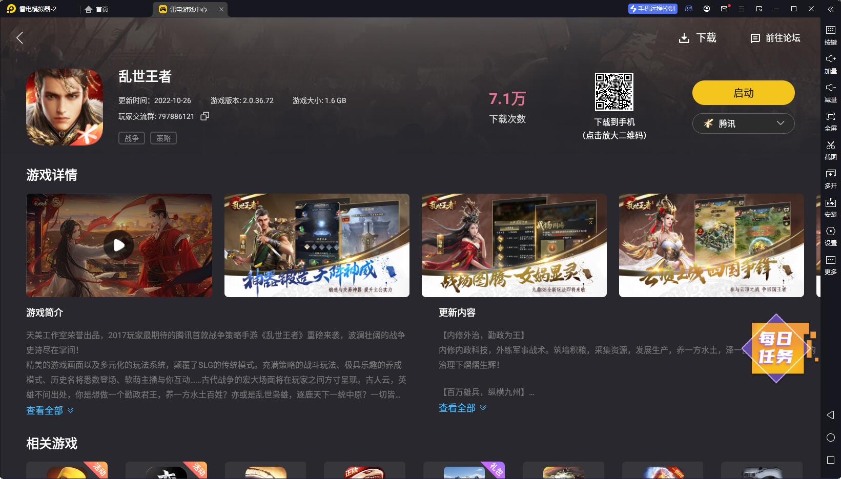 2,模拟器安装完成之后,打开桌面的游戏中心,直接搜索乱世王者,然后点击下载
