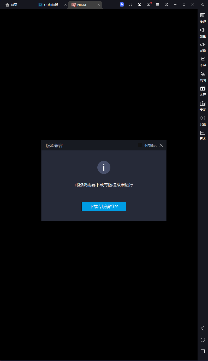 NIKKE:胜利女神下载后打开出现弹窗说要下载专用模拟器,不然就会一直闪退