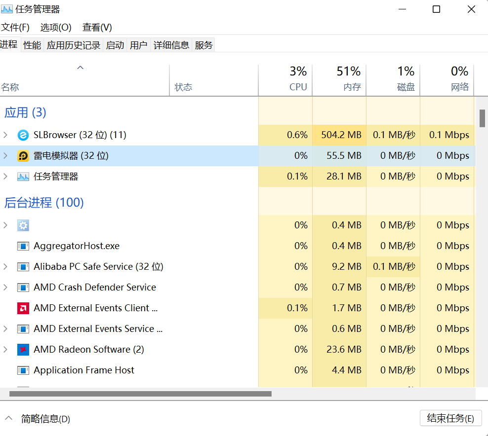雷电9运行后任务管理器显示是32位而不是64位