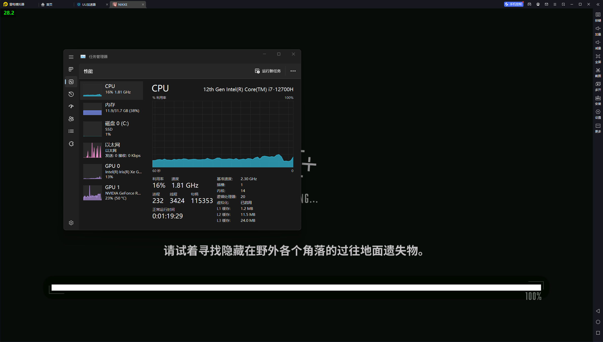 CPU型号:12th Gen Intel(R) Core(TM) i7-12700H