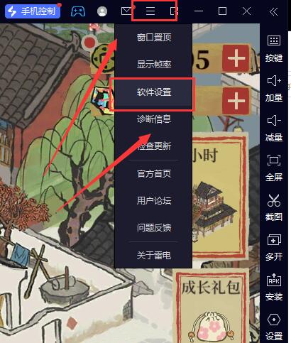 1,打开模拟器桌面右上角【菜单】里的【软件设置】
