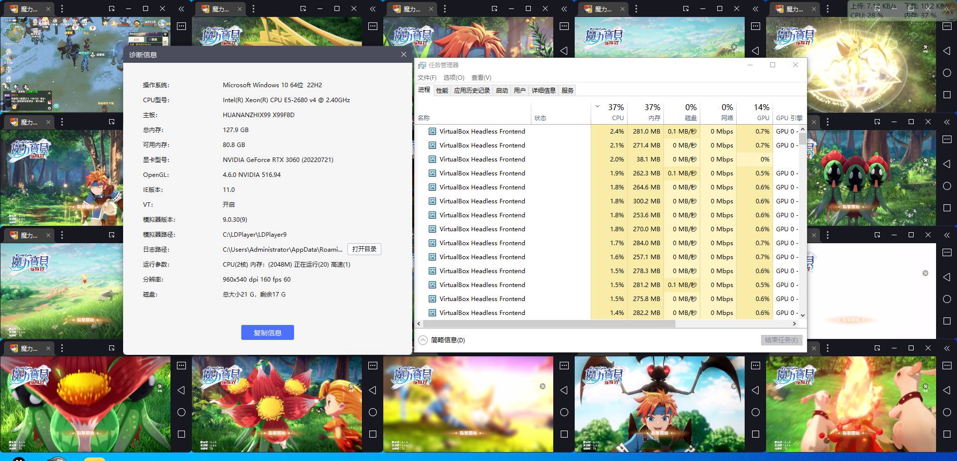 双路E5-2680V4,为什么模拟器才开20个就很卡了,cpu占用才40%,是什么原因?