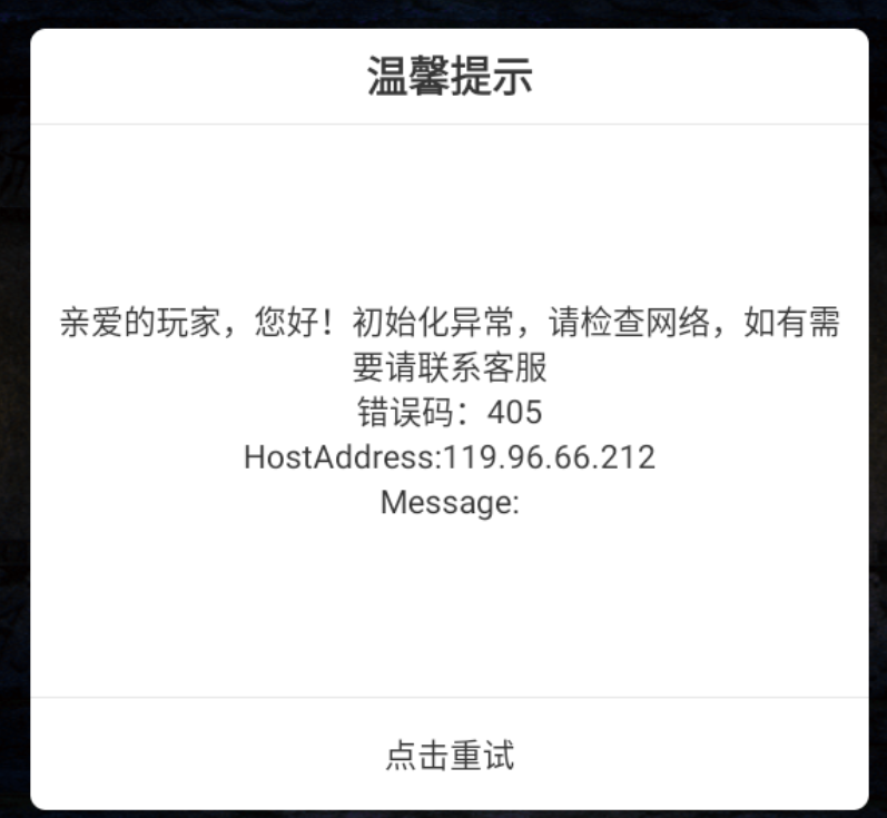 原始创奇错误代码405