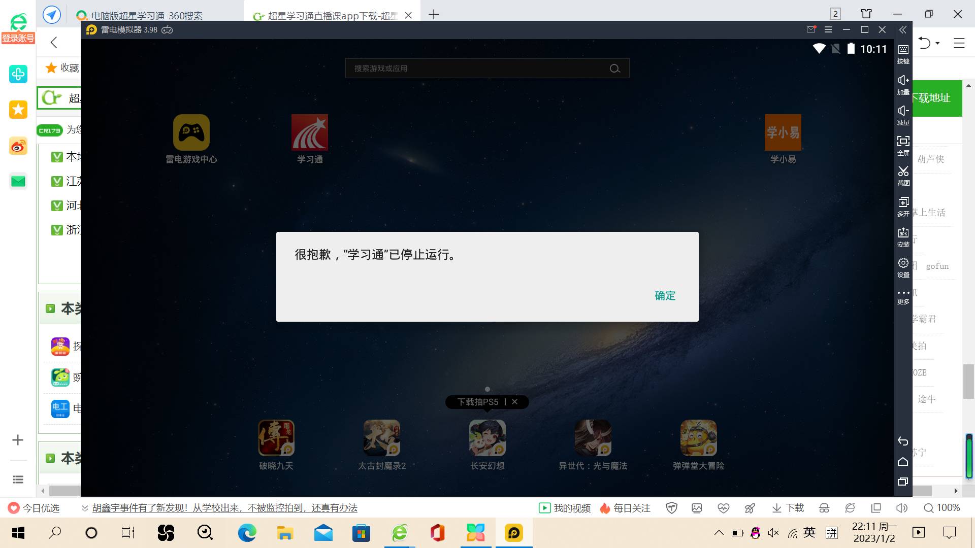 您好,您是更新了学习通吗?新版的学习通和模拟器不兼容,无法使用的