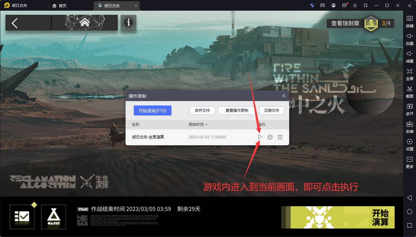 4、游戏进入到当前画面,打开操作录制窗口即可点击执行操作