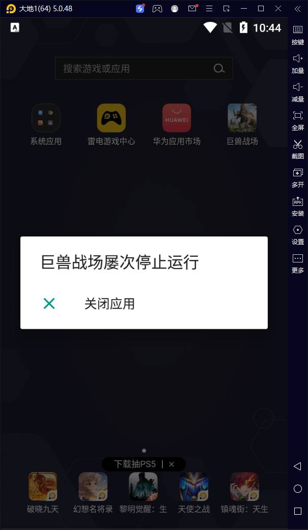 模拟器5.0.48(64位)下载的华为版本巨兽战场,登录卡顿,频繁闪退,?