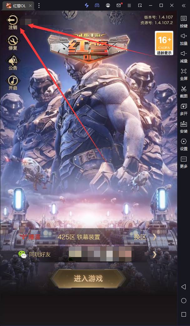 1,返回游戏登录界面,点击右上角注销账号按钮