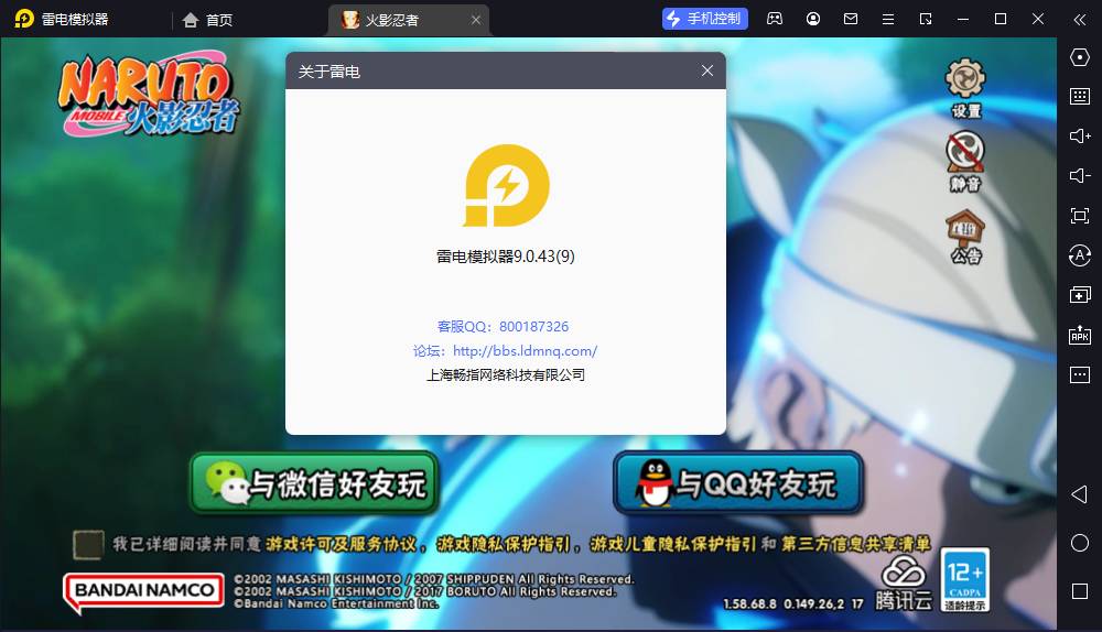 已经是最新版本雷电9.打开安装火影后, 没有IOS登录方式