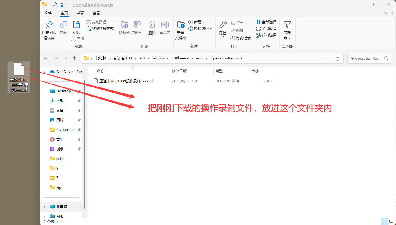 3、这时会帮你打开一个文件夹,把刚刚下载的操作录制文件,放进这个文件夹内