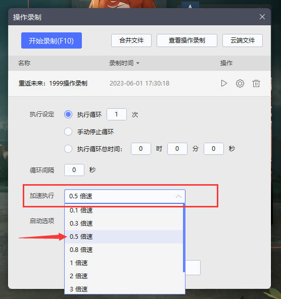 ①对于时长比较久的关卡,可以选择0.5倍速执行