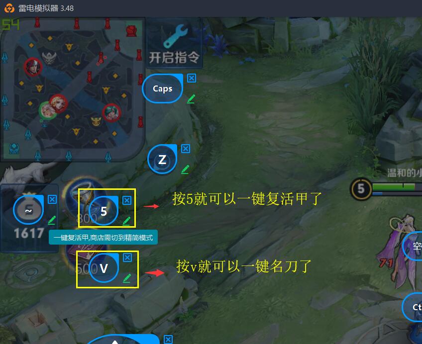 然后按“5”即可一键复活甲、按“v”即可一键名刀