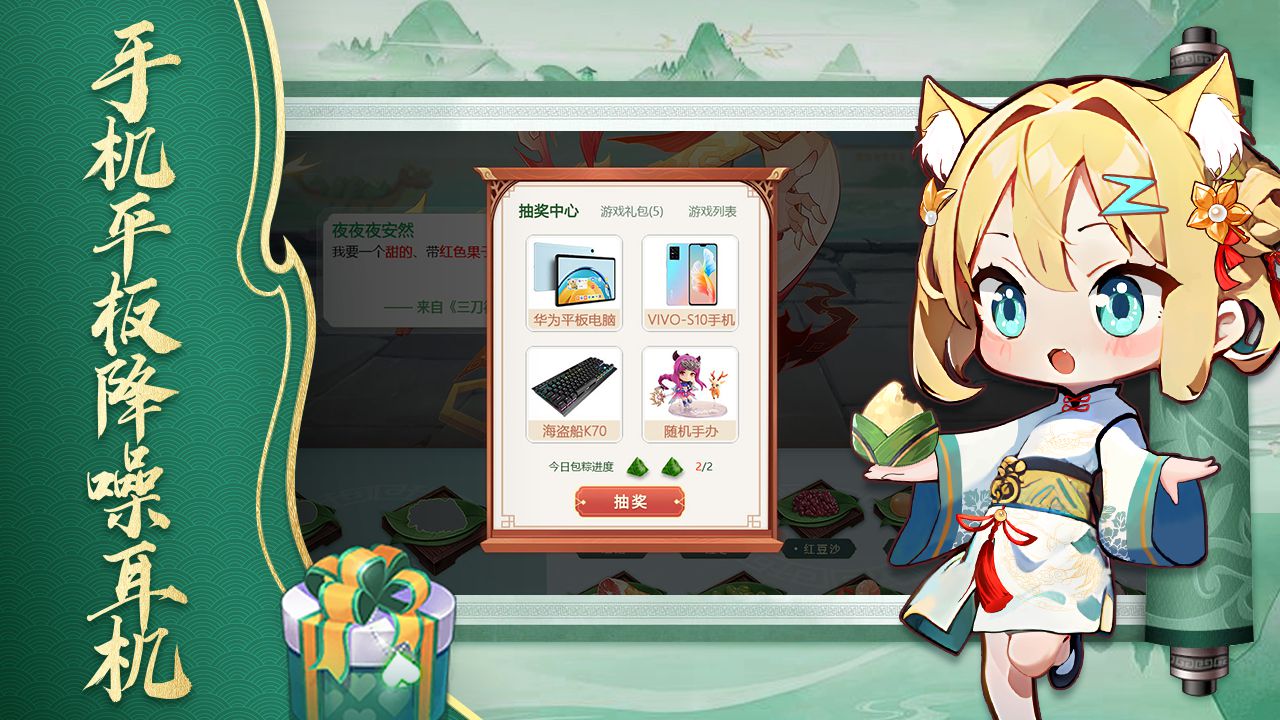 活动期间每天根据关键词成功包好2个香粽,即可获得1次抽奖机会,VIVO手机、华为平板、索尼耳机等福利等你来~