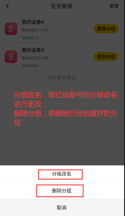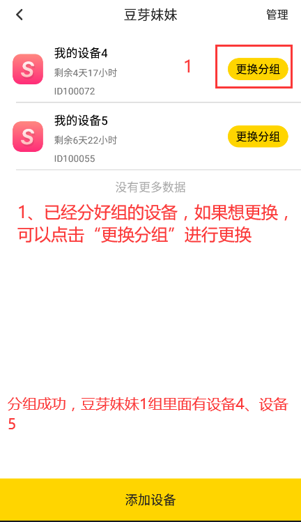 注意:已经分好组的设备,如果想更换,可以点“更换分组”进行更换分组,前提必须要有两组,才能进行更换