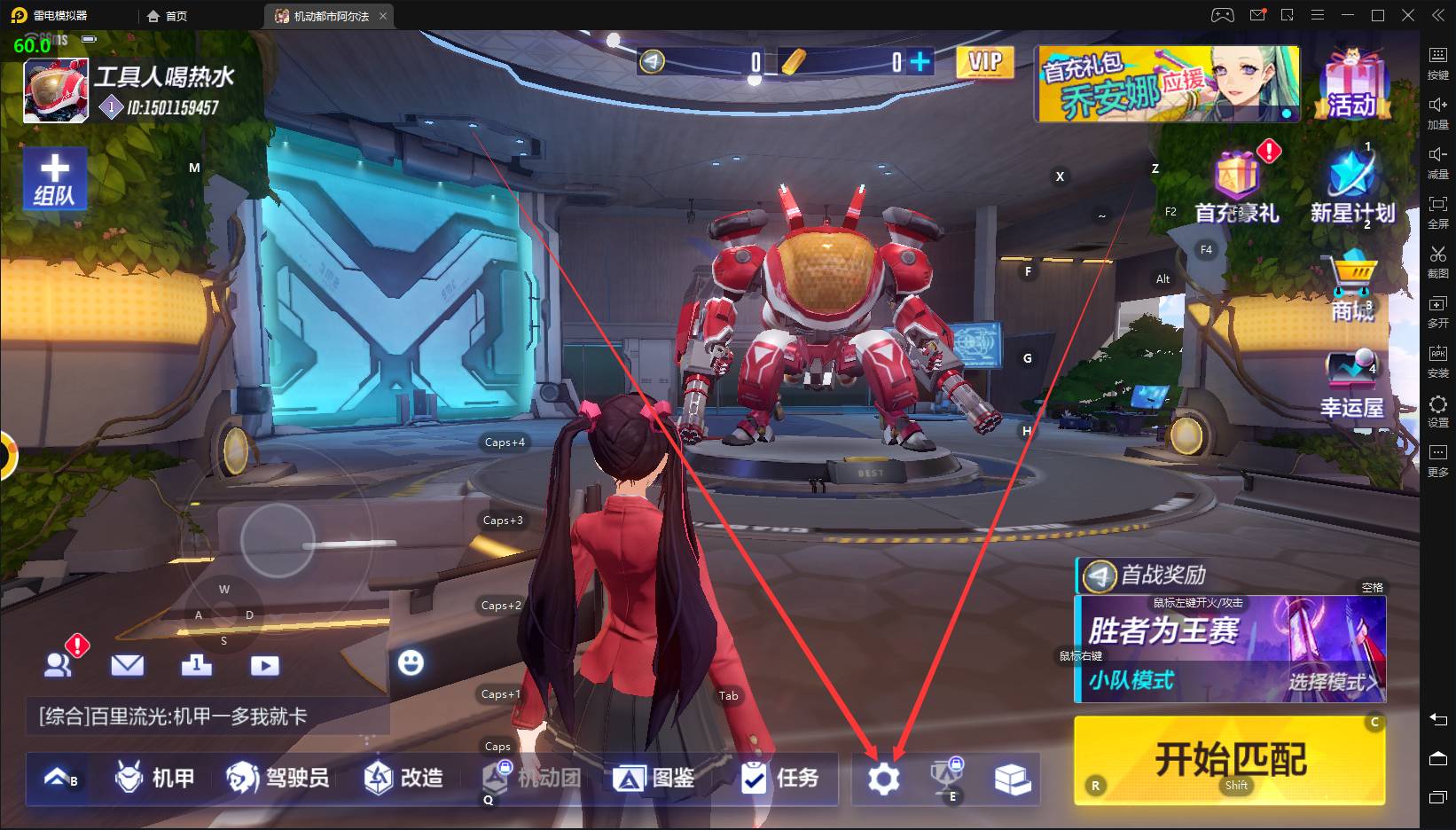 3、进入游戏后首先点击下方的设置(齿轮按钮)