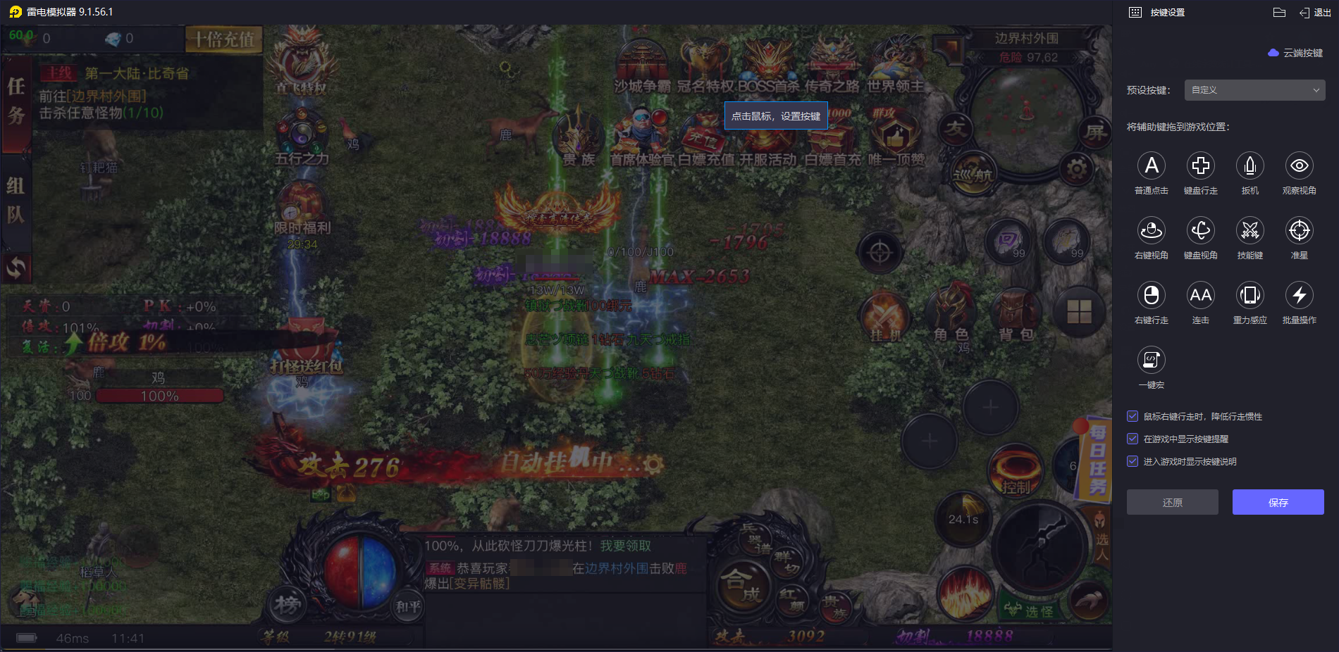 把道士的施毒术、治愈术等技能映射到键盘快捷键,释放时机比触屏更灵活,控制神兽走位时鼠标拖动也更顺畅,打 BOSS 时能精准卡好技能节奏。