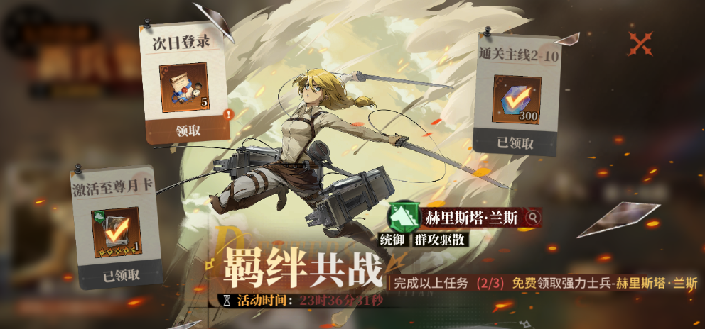 在7天活动内分别激活三个要求,即可免费领取一个SSR+英雄赫里斯塔·兰斯(新手必带英雄),三个要求分别为:次日登陆、激活至尊月卡、通关主线2-10