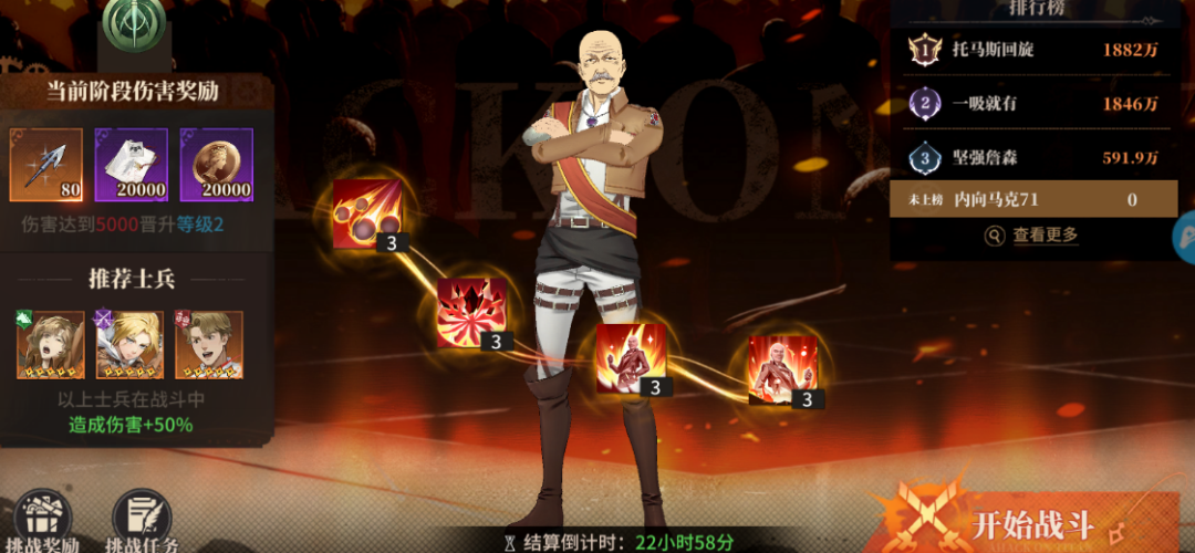 每天23:30分结算,只要伤害达到每个阶段伤害可领取挑战奖励,挑战任务只要伤害达到150万即可领取全部奖励。