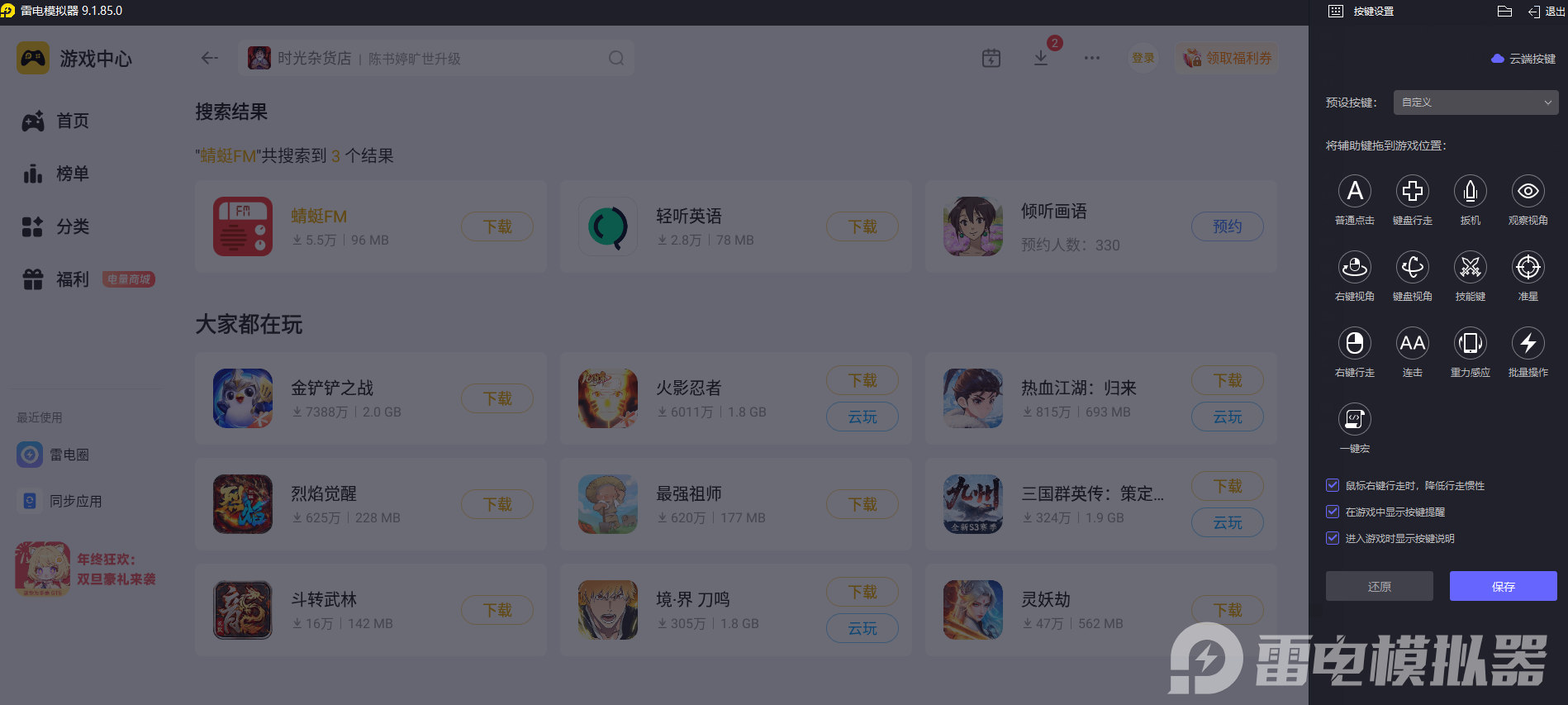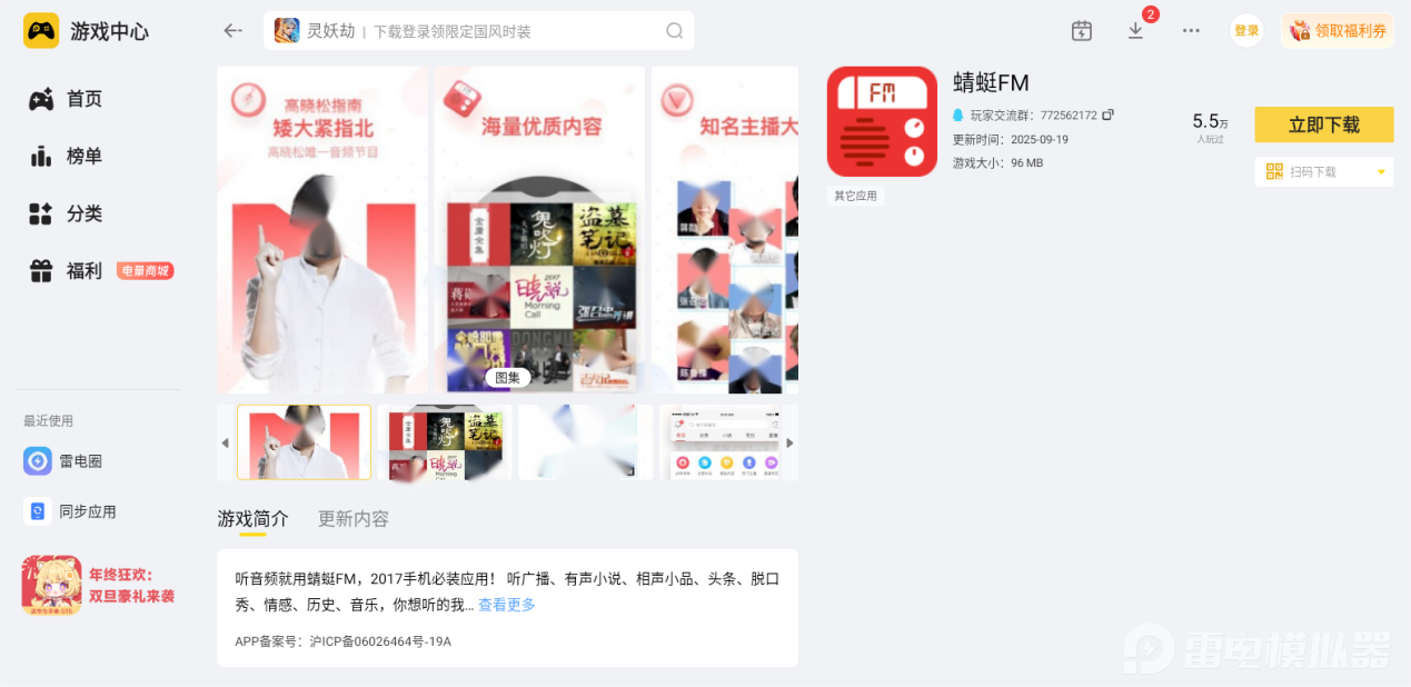 雷电模拟器的安装和使用都很简单,跟着安装指引几步就能完成设置,不用调整复杂参数。它的界面直观清晰,支持鼠标键盘直接操作,在上面用蜻蜓FM app,切换节目、调节音量、搜索内容都很方便,就算是不熟悉电脑操作的新手,也能几分钟内上手。