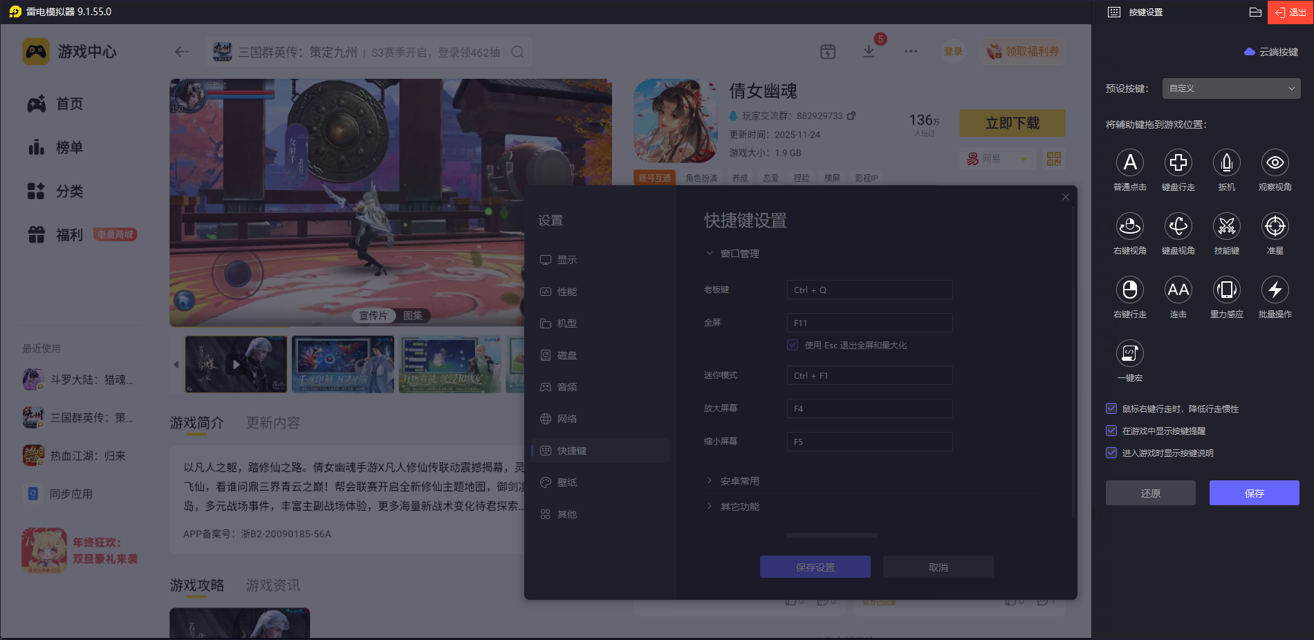 用雷电模拟器玩,支持键鼠映射功能,默认键位已经适配好游戏玩法,比如一键放群攻、快速切目标。要是觉得不合适,还能自定义设置,不管是单挑还是帮会联赛,都能避免手机触屏误触的问题,操控更灵活,反应也更快,轻松应对各种战斗场景。