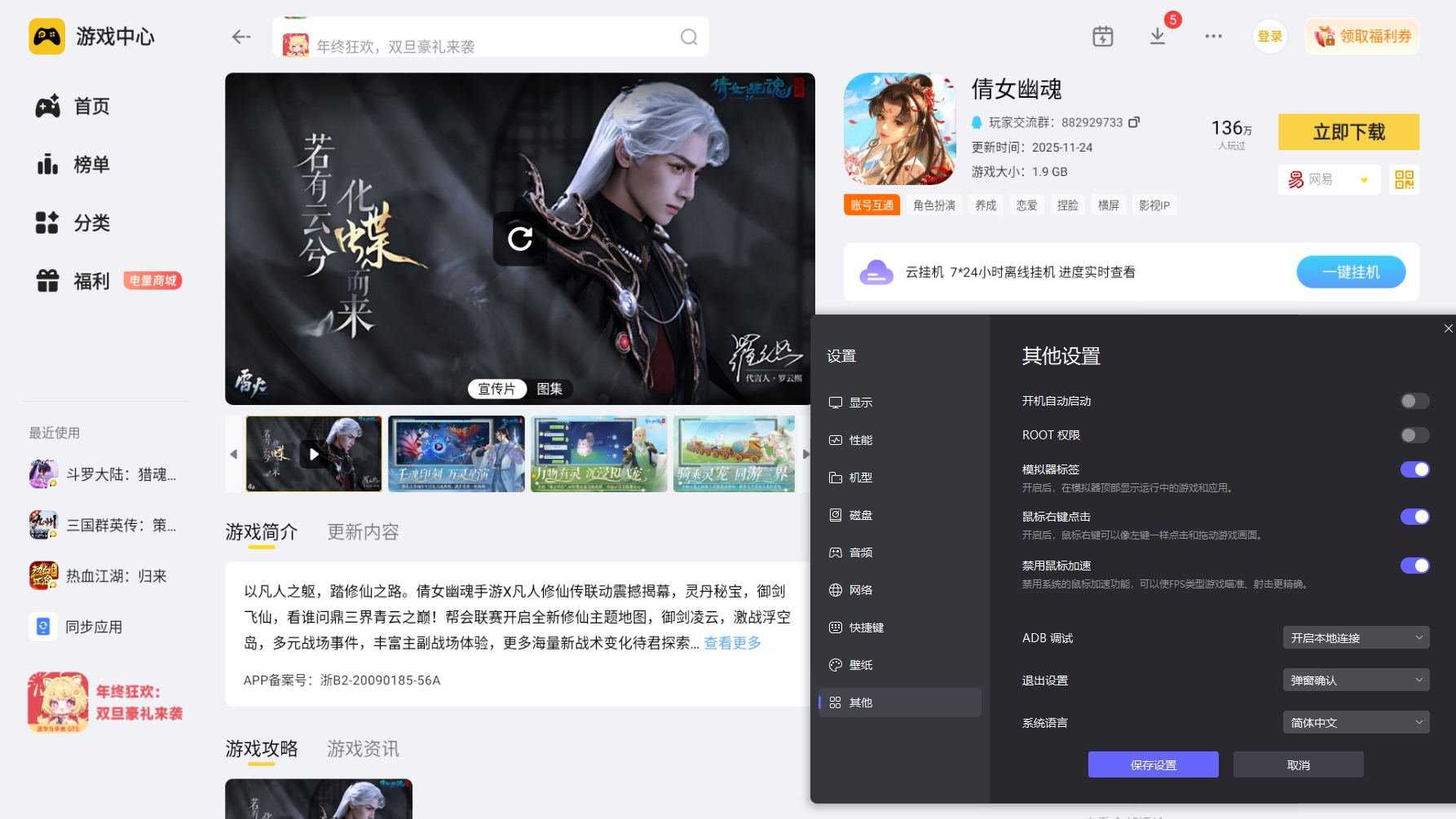 很多《倩女幽魂》手游玩家都想体验倩女幽魂手游电脑端,毕竟大屏能更好展现游戏的古风美景和激烈团战。倩女幽魂手游电脑端能打破手机操作局限,让副本闯关、门派竞技更尽兴,而想安全顺畅地玩上,选对适配的模拟器和正规下载渠道很关键,既能还原游戏核心乐趣,又能避免不必要的麻烦。