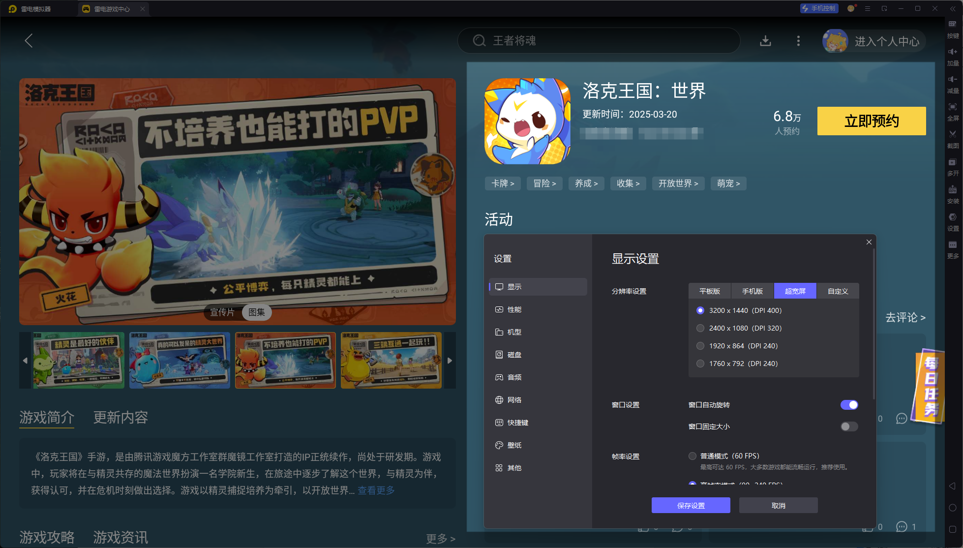 现在大家知道洛克王国世界开启预约了没有吧?这款游戏目前还在研发状态,但是全网预约数已经登顶游戏期待榜的榜首,由此可以看出它的热度之高。我们现在就可以打开雷电模拟器搜索洛克王国世界进行预约,游戏一开服就可以开冲啦!