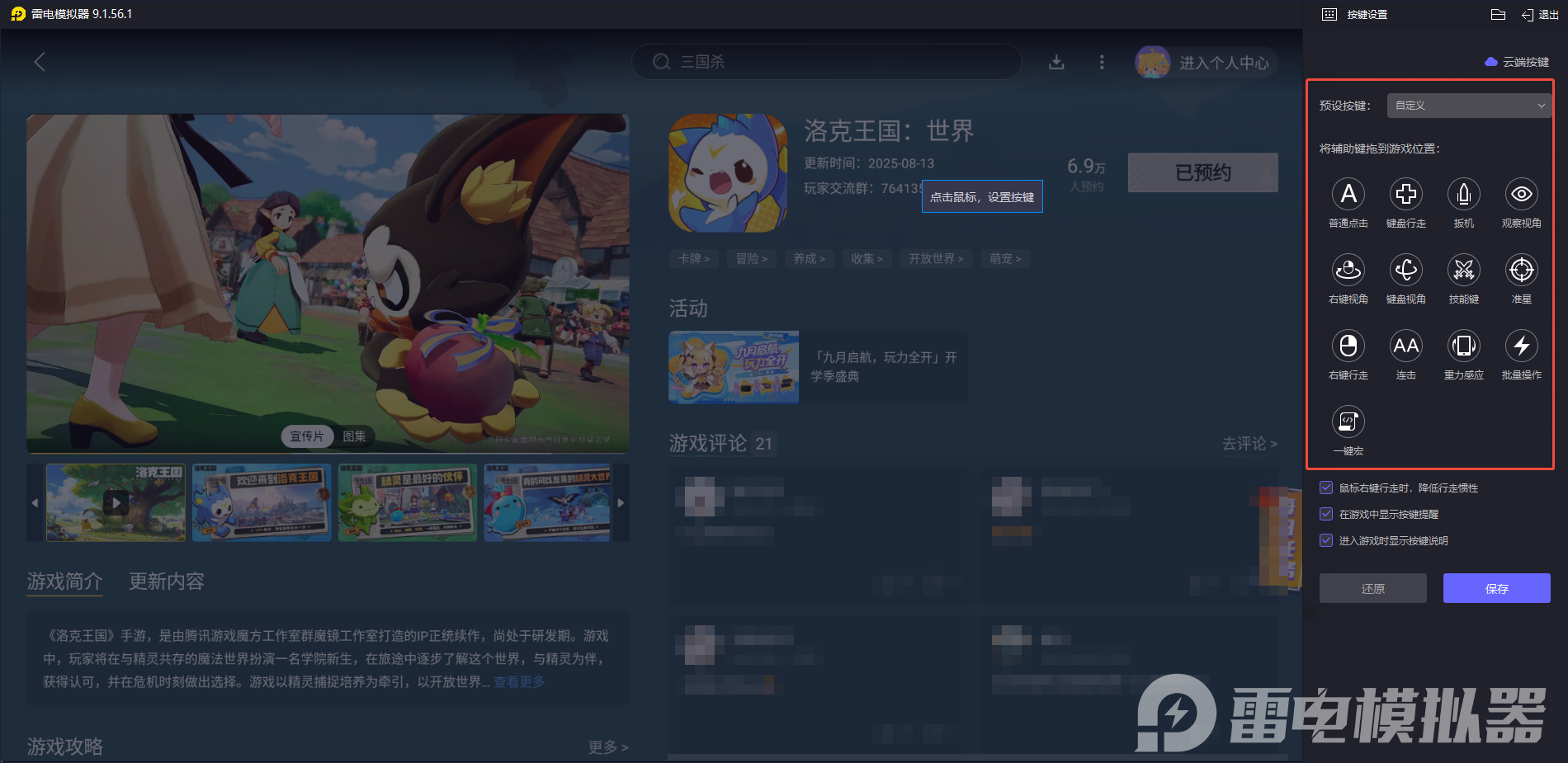 洛克王国世界阵容千千万,要怎么搭才强势呢?接下来给大家带来洛克王国世界阵容推荐,助力大家更好的在洛克王国世界里探索。说到探索,推荐雷电模拟器进行探索,它的键鼠映射功能可以精确又快速地让你操控角色进行探索。