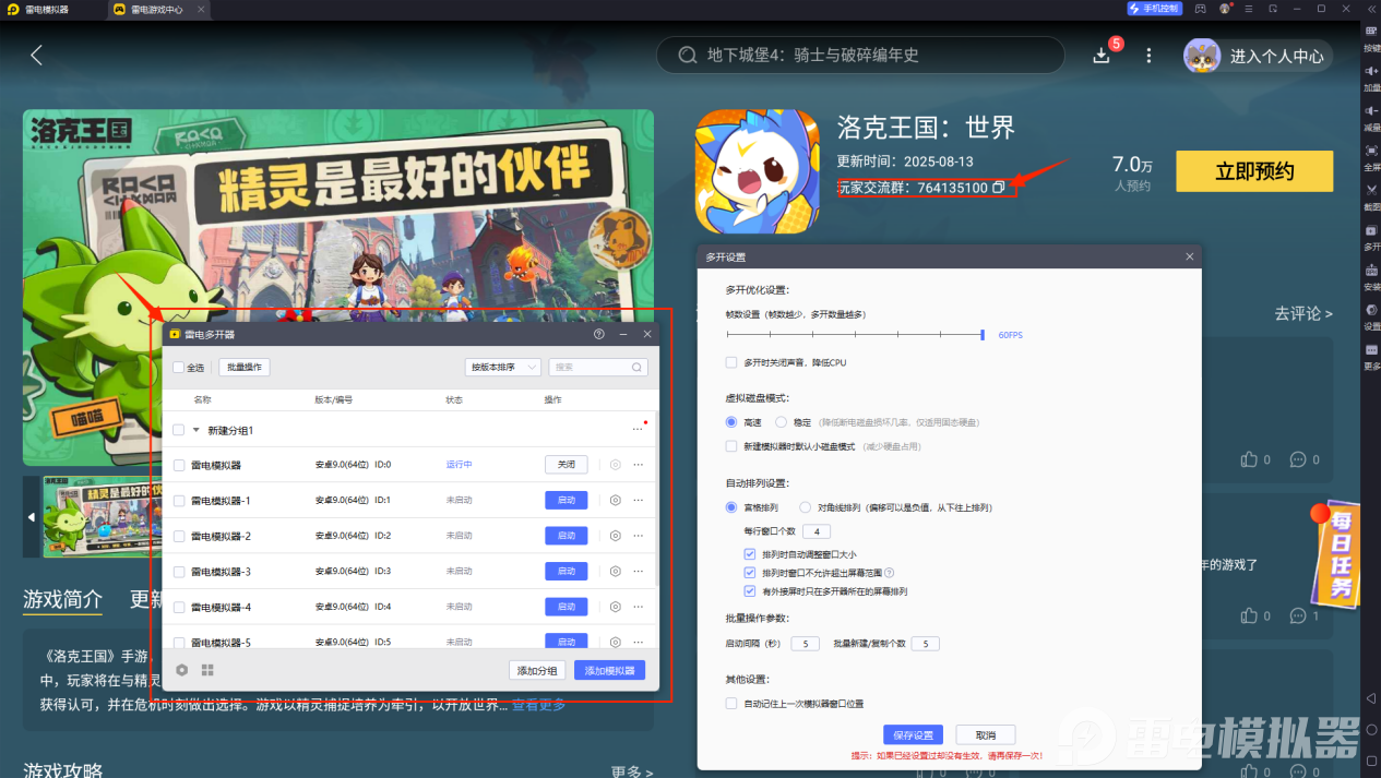 雷电模拟器的专属群聊,可以让喜欢玩这款游戏的玩家聚集在一起,交换战斗技巧,互换精灵果实,快速找到适合自己的游戏群体。雷电模拟器的多开器功能强大,能模拟器手机和平板环境,切换账号方便,还有防卡死功能,保证玩家多账号刷资源的速度。
