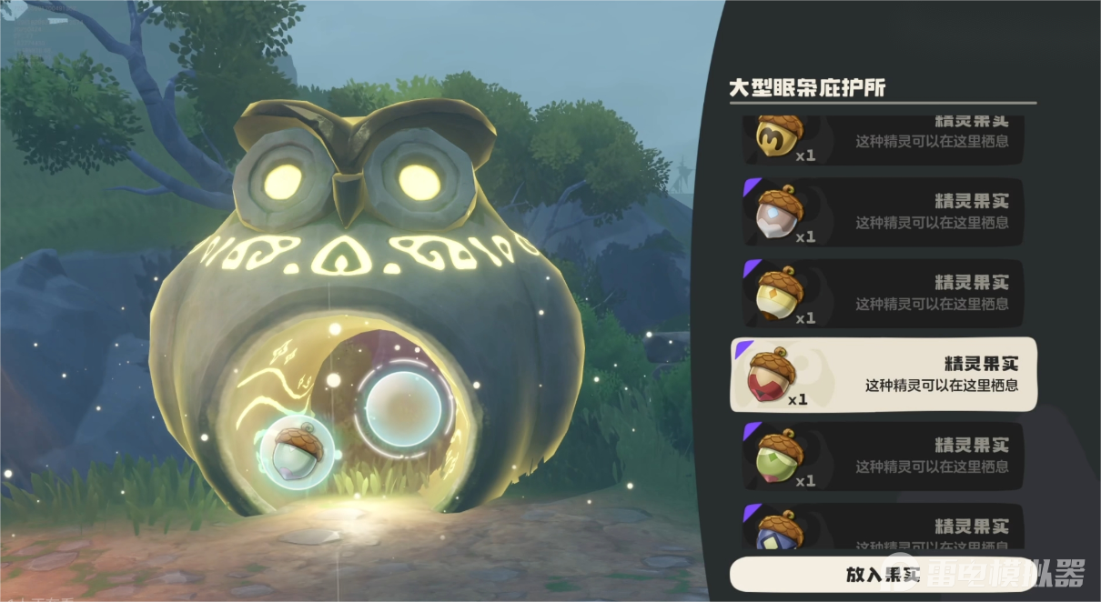 1、来到眠枭庇护所,点击庇护所会让各位玩家,选择果实,大家选择下图所示的精灵果实可以刷到骨龙的初始形态大头骨龙,提升等级之后就能进化为寂灭骨龙,展现帅气的一面。