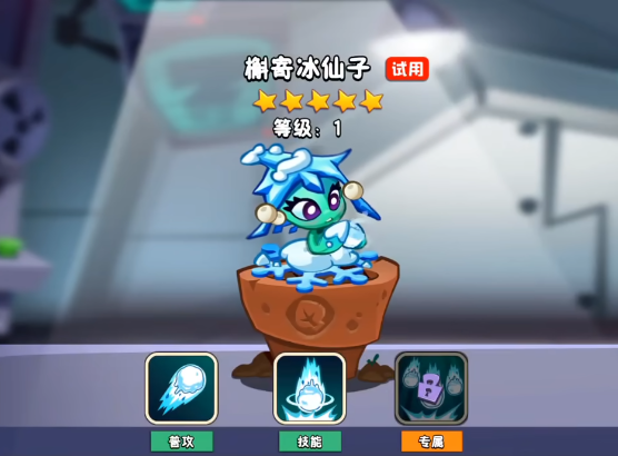 槲寄冰仙子开启技能后对全场范围投掷4枚寒冰仙弹,每枚寒冰仙弹对1x1范围的敌方单位造成自身攻击力140%的伤害。
