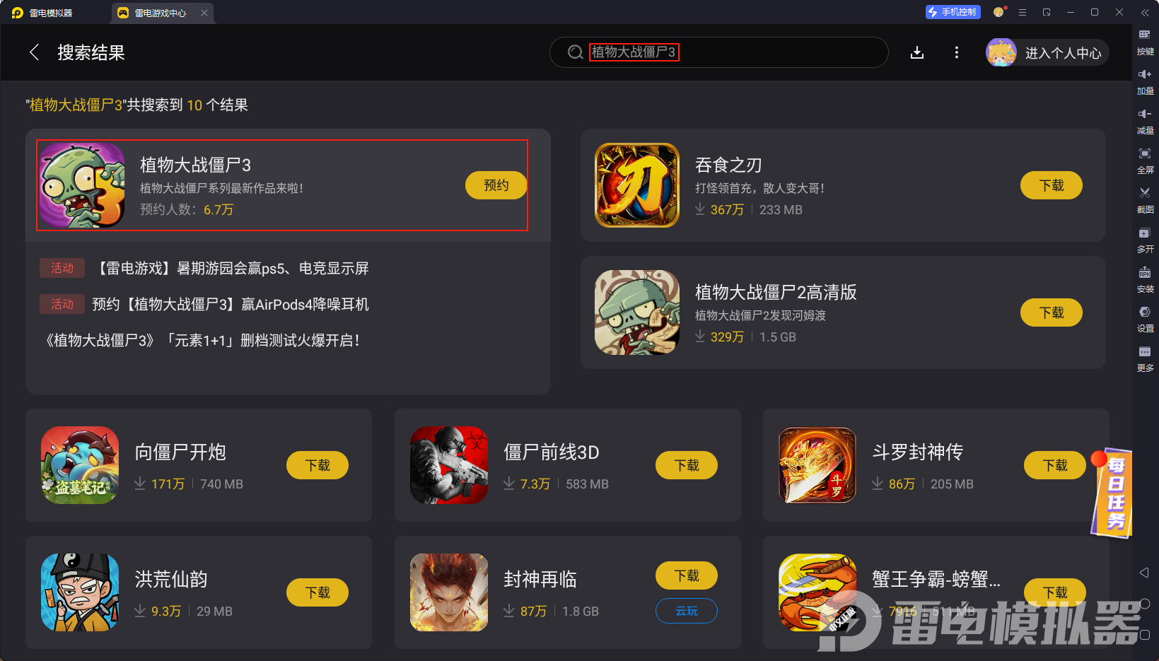 以上就是植物大战僵尸3电脑版下载安装教程,是不是很简单,快用雷电模拟器试试大屏游戏的乐趣吧!