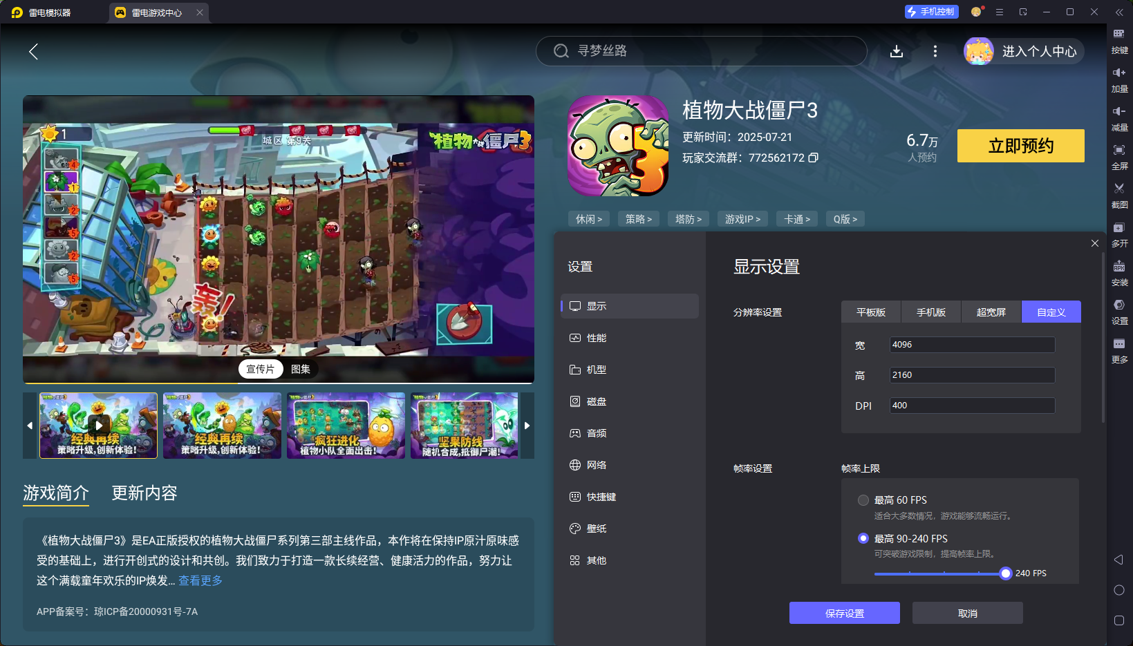 一、为什么选择雷电模拟器畅玩植物大战僵尸3?