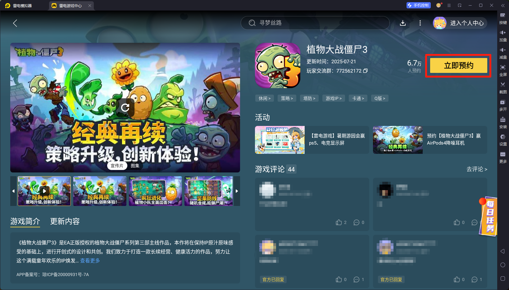 关于植物大战僵尸3电脑版怎么下载以及类似的问题,都可以试试用雷电模拟器下载安装,享受不一样的游戏体验哦!