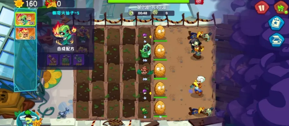 在第二排的时候,我们可以考虑去部署主力输出植物,像豌豆射手、火焰花等都是可以的,大家可以去主动利用它们的高攻击频率形成稳定火力网,在加入控制型角色增强效率,比如寒冰射手减缓敌人移动速度,为其他植物争取更多攻击时间,飓风薄荷则通过击退效果打乱敌方阵型等都是可以的。