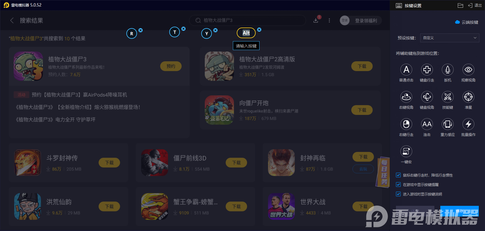 其实优先提升感觉植物属性还是非常重要的,玩家更是能主动尝试不同的组合,尤其是在面对高耐久的对手,而想要让实际的塔防表现更加的出色,那么大家是能考虑去打开雷电模拟器帮助自己的,该工具的自定义按键能让用户去针对喜欢的键盘位置设定快捷键,这样各位也就不用担心自身会有操作方面的失误,对于一些常用的植物等,这是能快速进行布局,更是能通过鼠标点击的方式来收集阳光,这个可比触碰操控便捷许多哦。