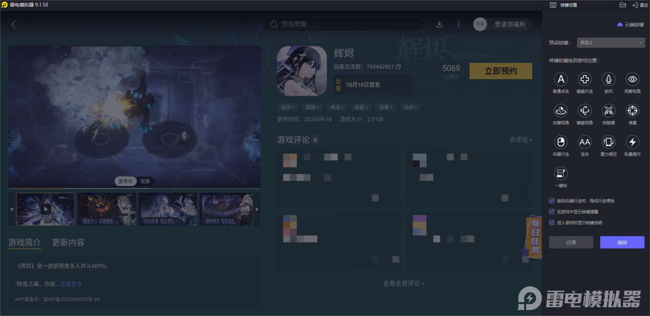 雷电模拟器还支持键鼠映射功能,方便玩家进行角色养成、队伍搭配等相关操作,助力玩家充分利用辉烬角色强度。