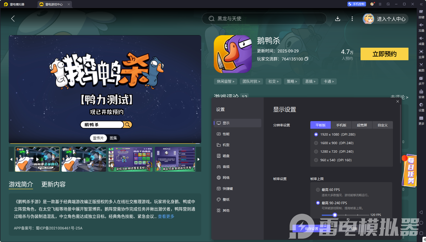 雷电模拟器——鹅鸭杀电脑版的好助手