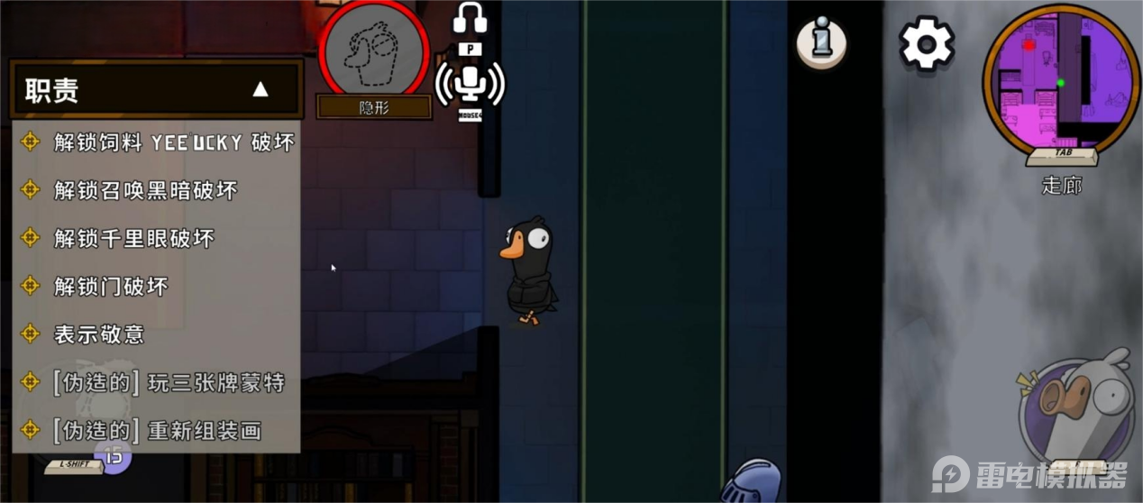 在鹅鸭杀手游中,隐身狼(又称隐形鸭) 是鸭子阵营的高机动性刺杀角色,以独特的隐身能力和出其不意的击杀策略闻名。很多玩家目前还不是很了解鹅鸭杀手游隐身狼,今天小编就来给大家简单介绍一下鹅鸭杀手游隐身狼,结合雷电模拟器,让大家对这个角色有一个深刻的印象。