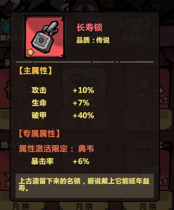 除了技能觉醒带来加倍的输出能力和回血能力,典韦也有着专属玩具【长寿锁】,配备即可激活+6%的暴击率。在极限输出时还顺带一波暴击,真是极致酸爽的体验!就问对面怕了吗?反正小汪已经是灰常瑞思拜了~