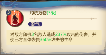对敌方随机三名敌人造成伤害,并使己方全体回血,是一个非常强大的回血技能。想不到小羽看起来娇小可人,奶量却如此惊人,真是深藏不露啊~