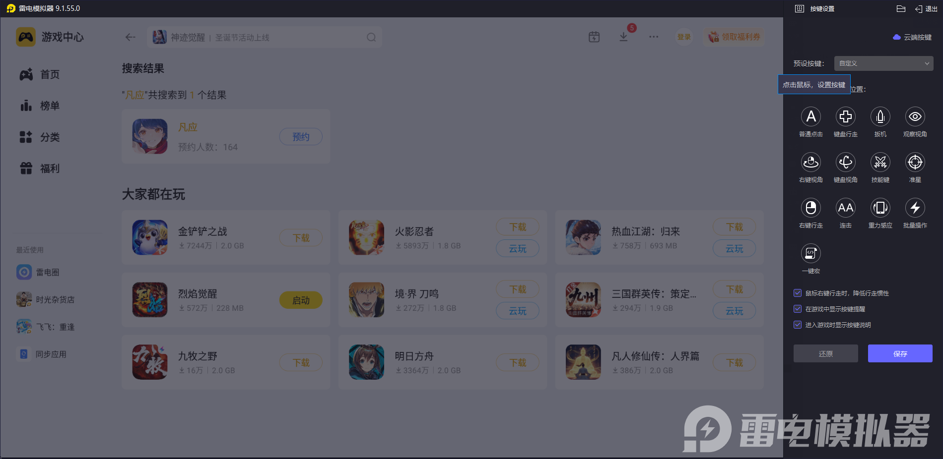 圣宫相关的玩法中,不管是与使者互动的精准点击,还是与对立势力对战时的连招释放,都需要灵活操作。雷电模拟器支持键盘鼠标映射,操作响应更快、无延迟,玩家能轻松实现角色实时切换、技能连携,面对圣宫相关的战斗时,格挡、处决等操作更精准,连招更流畅,不用再担心手机触屏误触影响体验。