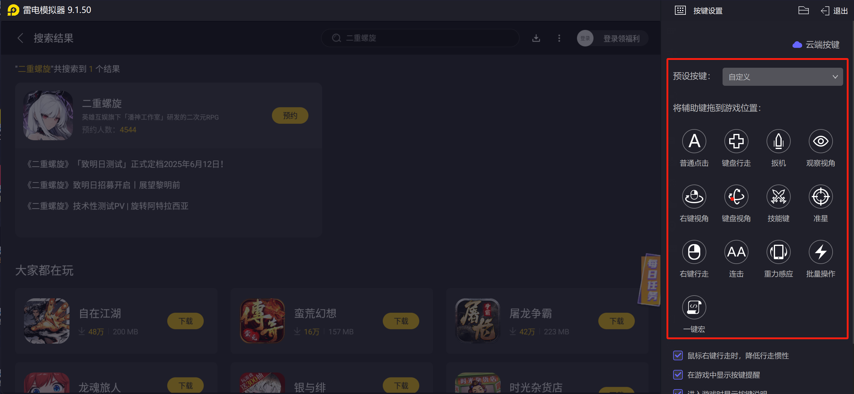 雷电模拟器还有2个非常好用的功能,雷电模拟器支持多开操作,玩家们可以同时登陆几个账号一起游戏,每日任务轻松同时完成,再也不用在手机上来回切换账号了。此外,雷电模拟器的操作录制功能也很好用,像游戏中每日的收集材料,打怪升级都可以提前录制好游戏操作以后,让模拟器自动运行,玩家们可以把更多的时间留给和朋友组团互动上面。